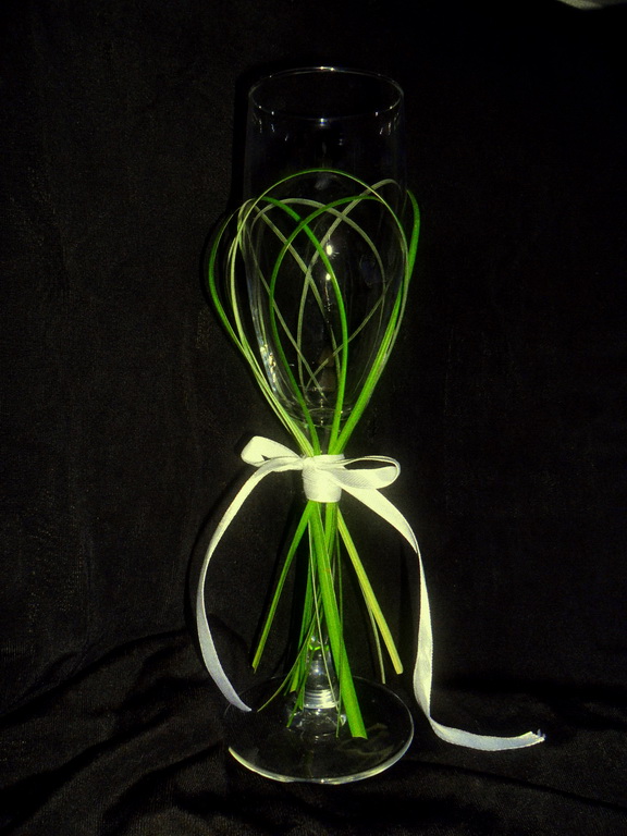по мне так тоже ближе обычное стекло, я еще очень за живые цветы в оформлении бокалов, вот делала подружке на свадьбу, ссори за фото,все на бегу...