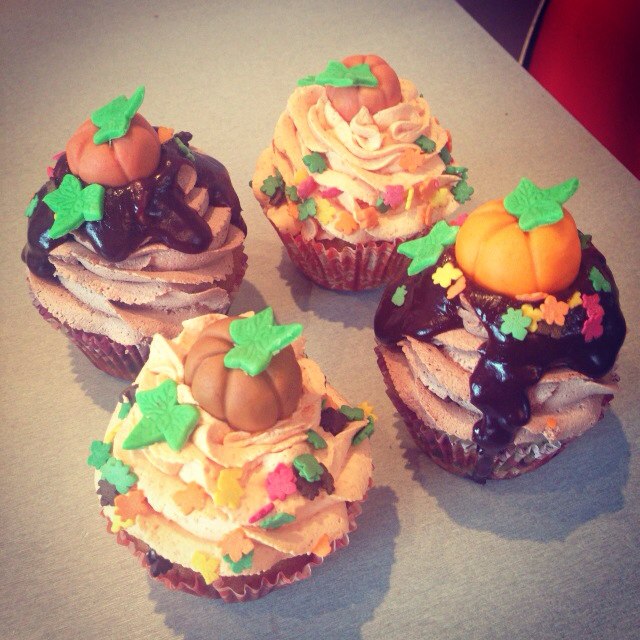 тыквенные с кремом корица, довольно простенькие, но я сделала для них специальные флажки и вместе могло бы смотреться чудесно если бы они выглядели вот так: