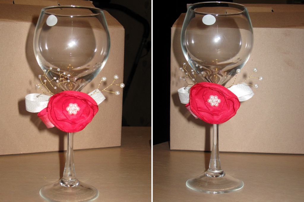Я вот бокальчик пробный намастерила. Пока смотрю, что нравится/что исправить  ЗЫ Цветопередача очень пострадала - вспышка + вечером фоткала. Цветочек темно-красненький