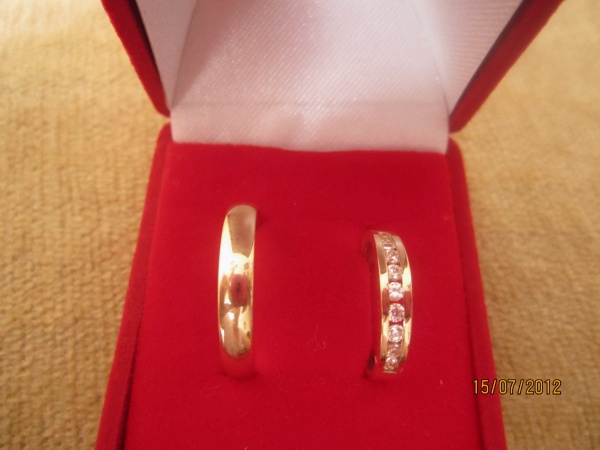 А еще после долгих скитаний по ювелирным магазинам купили наконецто вчера колечки  Столько всего перемеряли и что -то совсем не то, которые изначально оч хотели нам не подошли, а тут я увидела вывиску о салоне свадебных колец "Свадьба", вот там мы и нашли свои колечки  там их просто огромный выбор и плюс до конца месяца скидочка 15% Мне взяли с канушками, тк я люблю когда все переливается  а БМ после всего перемерянного остановился на обычном классическом колечке