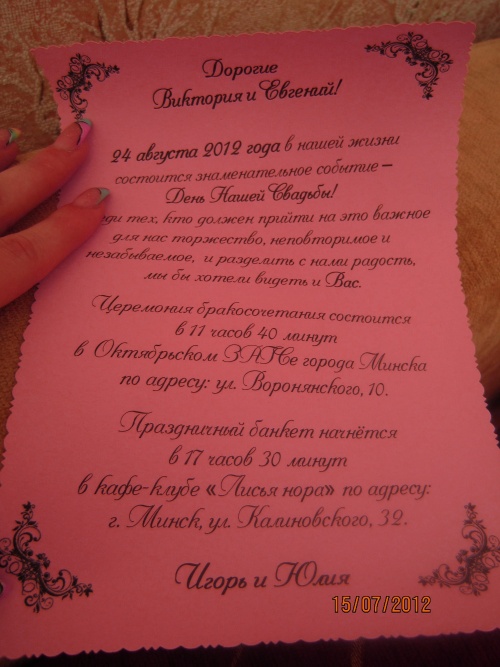 Да, пригласительные красивенькие! С покупкой колечек!