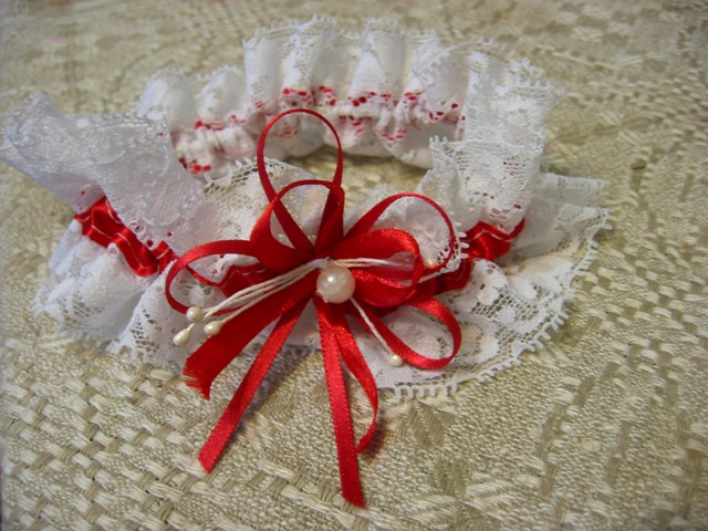 вчера сделала подвязки, одну ещё надо доделать (бантик или бусенку) ещё не придумала