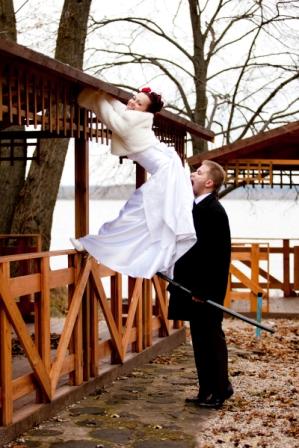 После кафе мы поехали на снятую квартиру. Посчитали денюжки, помыли себя в джакузе :oops: и любимка пошел смотреть телик, пока я вымывала весь лак из головы. Последствия этой мойки он потом минут тридцать вытирал полотенцем с пола ванной :mrgreen: Потом он досушил мне волосы и мы потопали спаткать. С утра мы лежали в постели и не знали, как себя вести и что изменилось в нашей жизни ) Решили, что не выползем из-под одеяла, пока не позвонят родители и не дадут нам подробную инструкцию. Черта с два мы её дождались ( Пришлось вылазить так. Полакомились мы сушками и фруктиками, собрали вещи и поехали домой. К обеду у нас было уже в районе двадцати человек! Но не смотря на них, мы уснули за столом обнявшись с любимым :mrgreen: Хотя один тост от дедушки я краем уха услышала и заценила!!!! Бум стремится к тому, чтобы он исполнился ) Проспавшись малость выпроводили почти всех гостей, встретили ещё оду пару (Лен, ты не знаешь, о ком я :wink: ) и врубили караоке ) В районе 11 ночи мы угомонились.