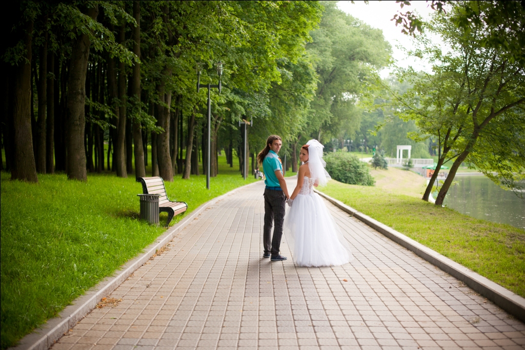 Сразу после ЗАГСа - 2й фотосет) только мы с мужем и свидетели. Место - парк возле ресторана Виктория. Мы погуляли, порепетировали танец, поискали фонтаны...а они не работают :evil: и такая жара-жара...плюнули мы и двинулись обратно. я уже не хотела трамваев, ни походов, гудели ноги, от жары ехала крыша! поэтому в рест мы приехали даже на пару минут раньше :D