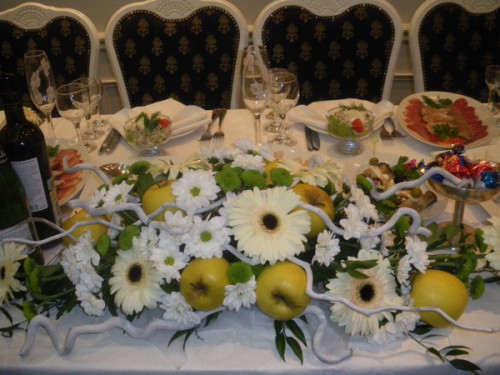 Для Вашей темы «Яблочки», могу вам подсказать очень здоровский зал - ресторана «Пан-Хмелю», я бы сказала, что этот зал не требует вмешательств декораторов))) хоть, мы сами таковыми являемся!