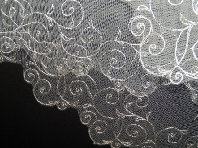 Irina Vladimirovna, очень интересный вариант фаты, совмещение несколько функций и видов : 1. фата-трансформер (отстегивается длинный слой) - идеальна для венчания 2. нежный узор -шелковая вышивка смотрится всегда воздушно. 3. Необрезанный край это, как я понимаю, фата -круг. Возле лица интересно она располагается (по-европейски). Поздравляю с выбором. Вот только, пожалуйста, не забудь выложить фото своей фаты (потом), чтобы в живую увидеть что получилось!