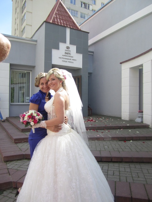 Прелесть. юбка у платья очень красиво переливается. Мне возле ЗАГСа с подружкой фотка понравилась, вы такие счасливые с ней как-будто обе в этот день замуж вышли, видно что она искренне за тебя рада.