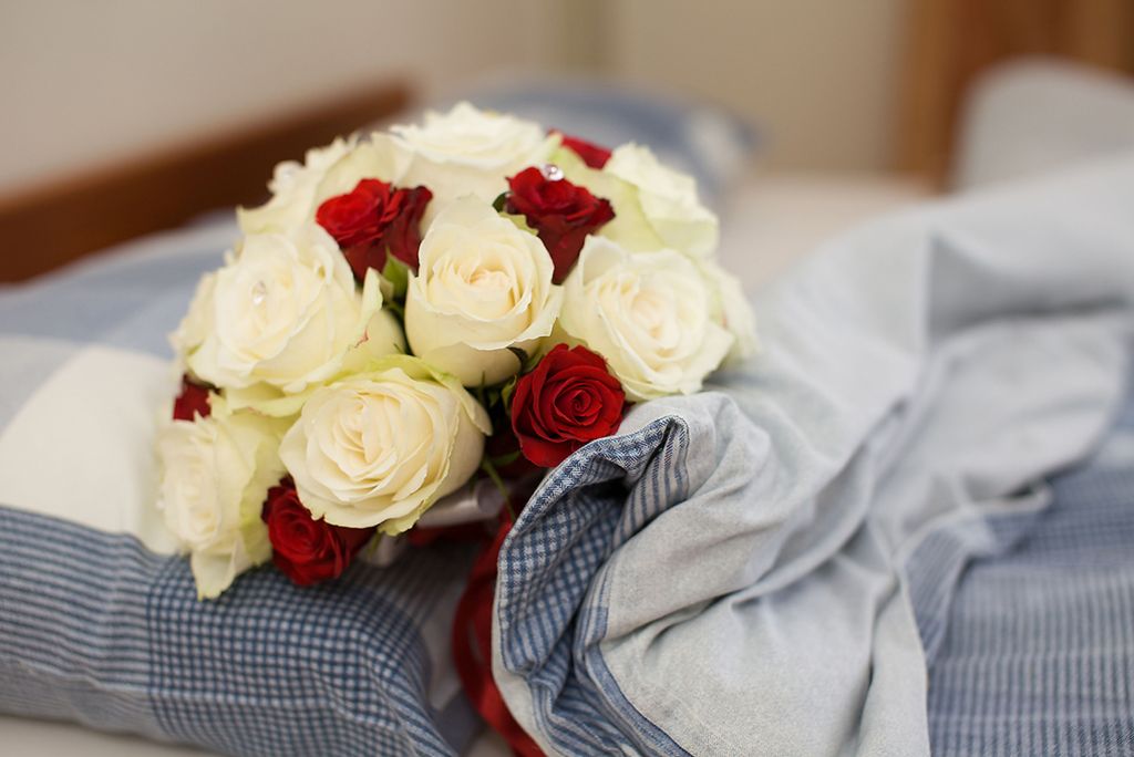 Мне уже в этот момент не хотелось ничего и пришлось делать вид что всё хорошо (правда у меня это плохо получалось)… Съемка одевания была сделана далее съемка когда муж заходит в комнату ко мне было снято аж в 3 дубля… Когда я одевала бутоньерку, то намучилась сильно т.к. не могла её застегнуть как ни старалась…