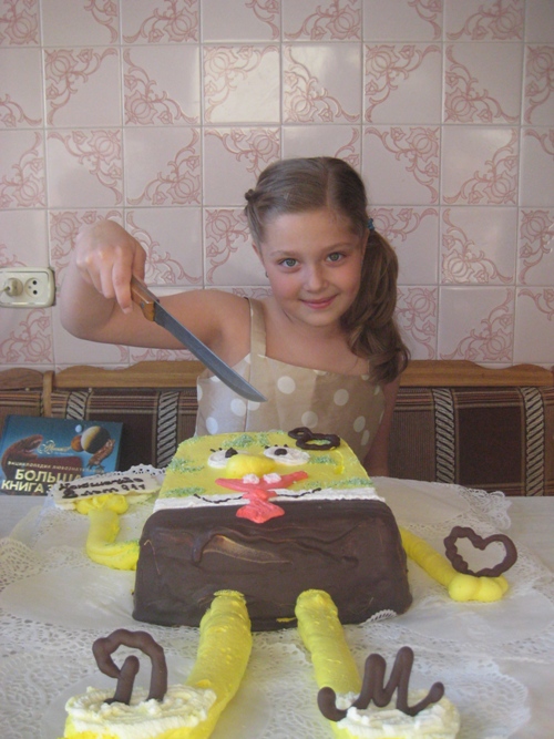 Melnikova писал(а): где отзыв про губку боба?)))))) Ой, извиняйте,  ИСПРАВЛЯЮСЬ! Скажу сразу, что тортик был ФИШКОЙ всего дня рождения!!!  моя племяшка, да и все гости, были в полнейшем восторге!!! Она фоткалась только с тортиком и ни с кем больше  По вкусу он был тоже МЕГА, МЕГА, МЕГА КРУТ,свеженький - таял во рту...мммм...ням-ням-ням!!! Всё было именно так, как я люблю тонкие коржи, много фруктов и все в воздушно-йогуртовом креме!!! Все съели по 2-3 куска ))))))))))) короче из 10 я им ставлю твердую 9. Снизила за то, что на табличке было написано другое имя  мы заказывали Ксюшеньке, а написали Полиночке  Пришлось БМке срочно бежать в магазин за шоколадом, а мне отковыривать ненужные буквы и переписывать табличку)