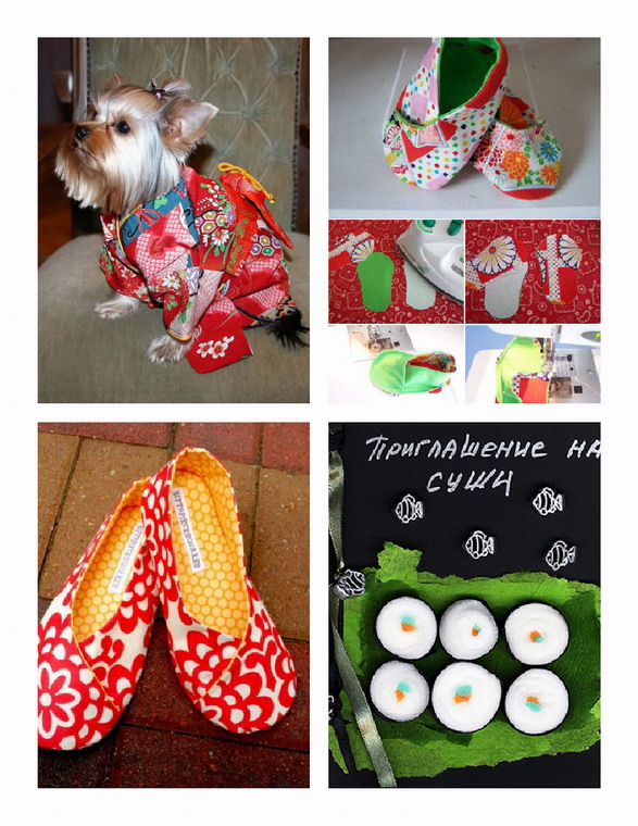 Вот маленькая идейка к твоему девичнику) У тя есть пес ему надо кимоно) И для девушек пришедших на твой праздник суши нужно сшить тапочки в японском стиле.Вот ссылка http://www.homespun-threads.com/pattern ... oshoes.pdf И самое главное это пригласительный на суши))))