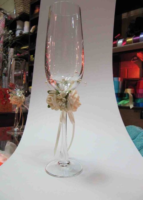 Ну, так как идея с бокалами? У меня свидетельница умирала со смеху, когда я ей рассказала, как мы выбирали цвета Единственное, пока не знаю на что крепить ленточки, бусинки, возможно, кружева и прочее... Или силиконовый клей, или двойной скотч?