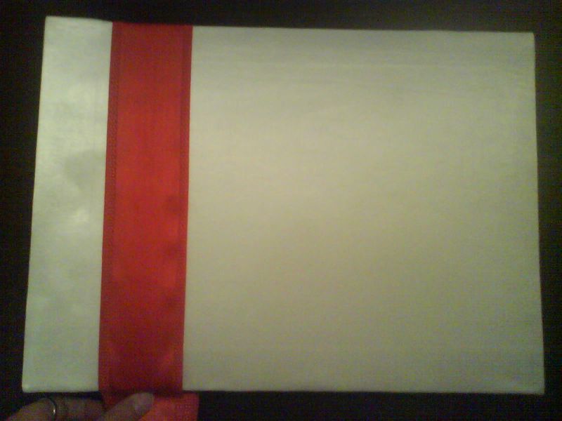 Ещё я сегодня начала разнашивать свои туфельки! Ох, я тяжело же мне придётся в день Х!!! Также я с мамочкой сделали альбом для пожеланий! в 4 руки работали! как получился, мне нравится! Осталось только несколько вопросов решить. Это как края на сгибе обработать и какого цвета ленточку прикрепить! Хоть свадьба у меня и зелёная, но как таковой она уже давно перестала являться... туфли другие, пригласительные другие, вот и альбом для пожеланий... хотя! Вообщем с одной стороны мне нравится как на белом фоне выглядит красная лента, а с другой стороны свадьба то планировалась зелёной! Девушки, простите за качество, фото с телефона, но идея надеюсь ясна!