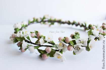 Hellga, в том-то и дело, что ты ЛЮБИШЬ живые цветы не только, условно говоря, на кусте, а и в срезанном виде, они поднимают тебе настроение и доставляют эстетическое удовольствие. И, наверно, квартира, полная цветов, приводит тебя в восторг. А меня в восторг приводит один маленький букетик, а большое количество огромных букетов наводят мысли о том, что и с меньшей половиной всего этого богатства было бы отлично, а остальное – просто трата денег. И ещё у меня резко падает настроение, когда цветы начинают вянуть, сразу приходят мысли о том, как здорово им было в саду и как теперь плохо в квартире, хотя умом и понимаю, что в саду они всё равно бы умерли и завяли, но на сердце всё равно тяжело. Ну и зачем утраивать себе и маме (наверно, мои взгляды во многом сформировались под её влиянием) лишний стресс, только потому, что «так принято, так у всех»? Кстати, если учесть, что все букеты и венки проходят специальную обработку (насчёт композиций на столы не знаю), сказать, что это такая уж 100% натуральность и жизнь я бы не взялась. Почему же тогда у многих девушек, работающих в цветочных магазинах, постоянно появляются аллергии и т.д.? Кстати, мне очень нравится образ Милюли, но это ведь был именно фотосет, весь день она с веночком не ходила, а мне нужно, чтобы он прожил 14-15 часов. Серьёзно задуматься о том, чтобы заказывать венок из пг меня заставили слова моего флориста. Когда на семинаре одна из девушек спросила, можно ли заказать у неё венок из живых цветов, ответ был примерно таким: «Конечно, за Ваши деньги возможен любой каприз, но подумайте, нужно ли Вам это. Может, стоит обратить внимание на венки из пг, они 100% будут свежи с утра до вечера?». Я тогда подумала: «Если уж флорист, которой выгодно продать как можно больше своих работ, советует отказаться от живых венков, может, в этом что-то и есть?». Потом о венках из пг отлично отзывалась моя парикмахер, в этом году 2 её невесты использовали такие в своих причёсках. Ну и распорядитель тоже хорошо отзывалась о таких украшениях и букетах, хотя, сам букет из пг я бы не хотела. Valery, Orfani, alisaR, спасибо огромное за «наводку», работы двоих из названных вами мастериц я раньше не видела, сейчас буду изучать. И спасибо всем остальным девочкам за их мнения. Видите, вопрос был поднят не зря, кто-то открыл для себя новый вид хэнд-мэйда Лично для себя никаких минусов в венке из пг не вижу. Плюсы: 1. 100% выдержит дорогу до Мостов с длительными прогулками (мы планируем записываться в ЗАГС на самое позднее в тот день время, выезжать из Гродно не позже 12) – красивый внешний вид причёски + мои здоровые нервы; 2. не требует специальной обработки для продления жизни цветов, соответственно, волосы и кожа головы не будут соприкасаться с «химией»; 3. не завянет и после ЗАГСа, соответственно, не придётся в срочном порядке убирать его из причёски к посиделкам в кафе; 4. можно будет использовать ещё не раз на разные этновечеринки, фотосессии и даже годовщину; 5. опять же живым цветам ничего не грозит Себе хочу примерно такой веночек:  Буду узнавать, кто из девочек-ремесленников готов взяться за исполнение чего-то подобного.