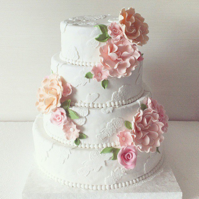 Это и будет наш тортик))) как раз все сочитается между собой - у меня на платье пудровая розовая лента, в декоре цветы тоже белые и пудровые розовые и персиковые))) и тортик тоже как раз такие цвета как надо