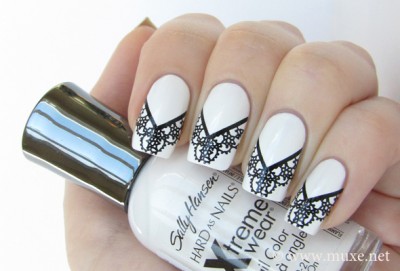Решила продумать свадебный маникюр. Ногти я наращиваю, так что с длиной проблем не будет. Форма скорее всего квадратная. Хочу френчик, но с какими-нибудь интересными элементами. Что-нибудь черно-белое с фуксией. Может с дамаском или хотя бы с кружевным узорчиком. Может у кого в закромах есть интересные картинки? Вот, что я нашла. №1. Вложение: