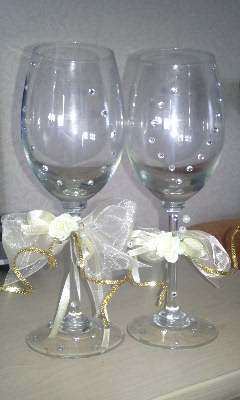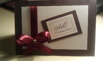 Спасибо девочки! Идем дальше. Когда определились с самым главным, навалилась куча мелочей. Пригласительные. Уж очень не хотелось рассылать купленные в "Союзпечати" стандартные открытки. Поэтому стали рыть в нете. Куча предложений, вариантов. Глаза разбегались! Все так красиво, необычно! Когда добрались до сути вопроса, подоспело поднятие курсов и т.п. Стало дороговато. Но останавливаться на полпути не стали. Взала на вооружение понравившийся макет из нета, купила бумагу и пошла в типографию. Вышло в разы дешевле, но ничуть не хуже, чем на картинках. Оформление. На наше счастье, моя подруга совсем недавно стала заниматься этим, что-то вроде бизнеса. Докупила только некоторые мелочи. Арка, юбки на столах, чехлы на стульях, подсвечники, гелиевые шарики. Бокалы тоже собственноручно оформляла накануне вечером. Машину заказали напрокат "Мерседес S 220". А накануне позвонили из данной организации и сообщили, что за эти же деньги могут предложить нам кабриолет. Просто мечта!