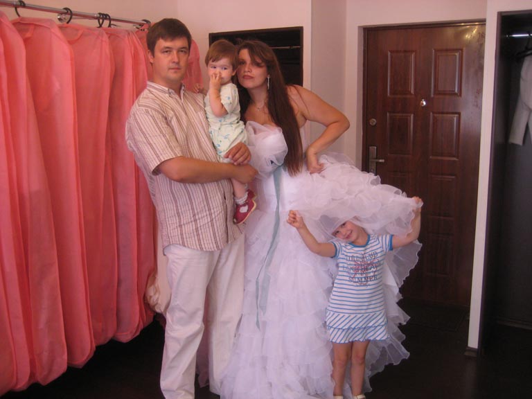 вот нашла фото с первых посещений салона, сразу я выбирала белое, но когда решили использовать платье на 2 мероприятия( на другую свадьбу в качестве гостей и на своё венчание),попросила пошить понравившуюся модель с коричневым кружевом ( и они мне его нашли(кружево)!!! хотя могли отказать) С форумом на сайте салона я объяснила тут повторяться не хочется.