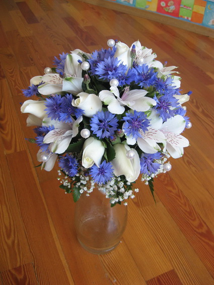 Катюша, мне очень нравиться первый и последний букеты, но если хочешь васильки то последний вообще классный. У меня тоже должны быть букетики с васильками в копилке, и еще просто белые с синим Вложение: