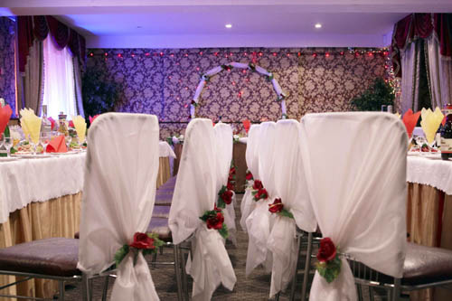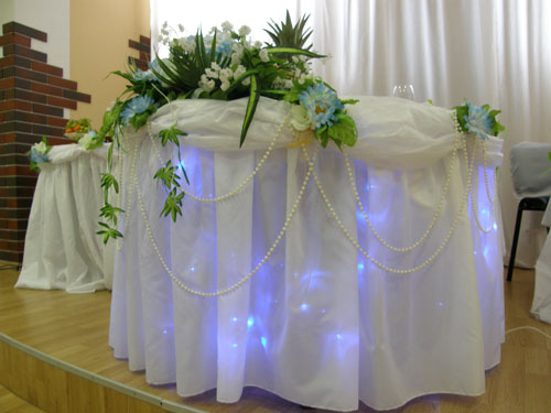 я заказала украшение в империи развлечений, за весь зал 110 уёв это оч демократичная цена, входит: получехлы прим 55 шт, стол молодых, конструкция за молодыми, стол для дарения, и она предложила исчо арку но мы отказались,т.к. она немного в другом цвете.