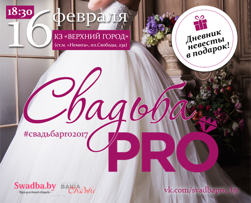 Шоу-проект «Свадьба PRO» - это нестандартное, уникальное мероприятие для молодоженов, главная цель которого – помочь решить нелегкий вопрос организации и подготовки к своей свадьбе. Что это за событие? Для кого? Кто там будет? Зачем туда идти? В одном месте соберутся десятки пар, подавших заявление в ЗАГС или собирающихся это сделать, и решающих вопрос о подборе самой лучшей команды на свою свадьбу, от которых напрямую зависит насколько идеальной будет это единственное в жизни мероприятие. Всего за один вечер у Вас будет возможность: 1. Сделать пригласительную открытку СВОИМИ РУКАМИ; 2. Выбрать идеальное свадебное платье коллекции 2017 года; 3. Стать участником "почти" настоящей выездной регистрации брака; 4. Узнать тонкости выбора именно СВОЕГО ведущего свадьбы; 5. Стать моделью профессионального визажиста и уйти домой с роскошным макияжем; 6. Продегустировать свадебный Candy bar и торжественно отрезать кусок свадебного торта; 7. Словить настоящий букет невесты; 8. Получить неповторимые фотографии в фотозоне и многое другое. Профессионалы свадебного дела расскажут PRO организацию и подводные камни, ожидающие многих на пути к подготовке самой лучшей свадьбы. Какие будут разыгрываться призы? Каждая невеста гарантированно получит мини-ежедневник, который поможет ничего не забыть в свадебной суматохе. На мероприятии будет проведен свадебный розыгрыш, на котором вы сможете получить действительно нужные вещи для вашей свадьбы. Каждый профессионал разыграет достойные призы, которые необходимы каждой невесте. Как принять участие? Необходимо в любой кассе г.Минска или же через электронные системы продаж купить билет на мероприятие и прийти в указанное время в указанное место. Основные функции билета - оградить мероприятие от людей случайных и незаинтересованных. В интернете или журналах много информации, но как отобрать действительно полезную и нужную? Мы сделали это за Вас, добавили свой опыт и делимся секретами!!!