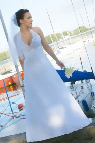 Ondine я сама девушка прилично крупнее Вас, ой намучалааась с платьем... Зато могу посоветовать вот что: отойти от шлейфов, даже маленьких (режут рост), отойти от нагромождений на платье в виде валанов/рюш и проч (придают лишний объем), и обязательно (!!!!) брать только платье с низким корсетом - формировать силуэт... В качестве примера вот фоточка платья (да простит меня прекрасная невеста, положившая фото в галерею, за то что взяла ее фотографию)... Как пояснили мне сотрудницы салона, девушка на фото - 52 размера одежды... (или даже 54го - сейчас уже плохо помню  ) (исполнение может быть любым, просто посмотрите на силуэт - может быть Вам понравится).