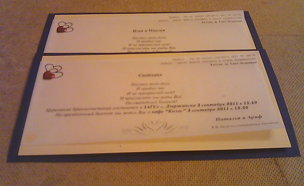 Сегодня в гости приходила свидетельница и мы сне домучали приглосительные. Правда немного их проапгрейдили. И вот что у нас получилось