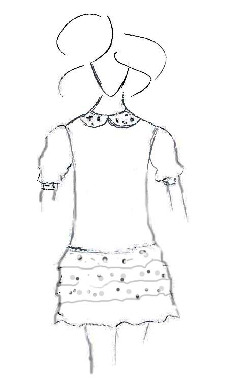 Небольшие изменения произошли - в рукавах (они стали короче), в воротничке (он стал выше и меньше) и в том, что юбка стала содержать три уровня одинаковой длины. Ах да - по спине будут идти пуговички. Мелкие точки на юбке - это расшитая бисером или стеклярусом сетка, которая будет нашита на шелк. Уровни будут нашиты на платье, последний уровень не расшит - это окончание платья. В общем, вот что получилось:) Вложение: