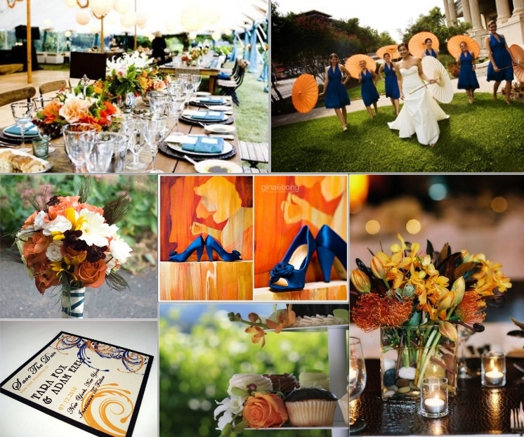 Синий цвет - это «дорогой» цвет, испокон веков отождествляющийся с элитой общества. Голубой и синий цвет символизируют доброту, верность, постоянство. Эти цвета по ассоциациям принято считать цветом майского утра. Чистота, нежность ,спокойствие , лёгкость и прохлада, исходящая от многочисленных оттенков волшебных голубого и синего цвета очень удачно используются в свадебном декорировании. Голубой в сочетании с коричневым выглядит -спокойно и умиротворяющее, с зелеными оттенками – изысканно-нежно, с жёлтым и оранжевым – ярко и весело, с красным – демократично, с розовым и персиковым – торжественно. http://flamingo-event.ru/archives/2698