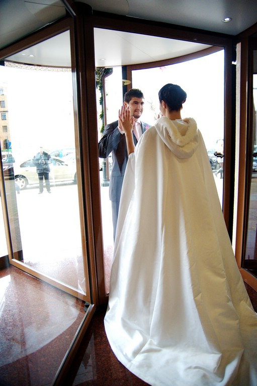 Собрались мы ехать в ЗАГС, а наши извозчики как всегда опаздывают так как я к этому уже привыкшая я даже не переживала. Настроение было отличным чесалась спинка и тихонечко росли крылышки. По коже постоянно бегали маленькие эльфики. Над головой порхали бабочки. Бондик постоянно срывал с губ поцелуй. Блеск слизывался в мгновение ока так что наказ Машеньки я не могла ни как выполнить. В состоянии эйфории мы собрались ехать. Пока складывали все наши пожитки в машины Мы умудрились сделать парочку кадров в холле отеля.