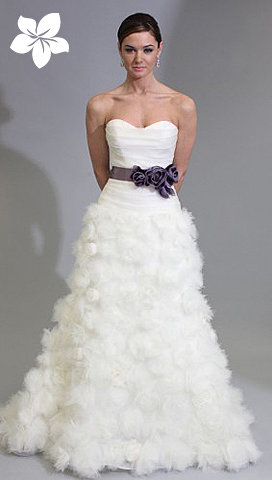 Уже несколько сезонов подряд в ТОПе модных свадебных тенденций неизменно присутствуют подвенечные платья с поясами. Пояс, как элегантный, но в то же время чувственный акцент является не только изюминкой свадебного образа, но еще и выгодно подчеркивает силуэт, выделяет талию невесты. В приближающемся 2012 году свадебное платье с поясом станет еще более популярным, но если ранее в моде были платья с яркими поясами, то в наступающем году мировые дизайнеры сделали упор на пояса в цвет к платью, пастельные и черные пояса и пояса расшитые камнями и бисером.