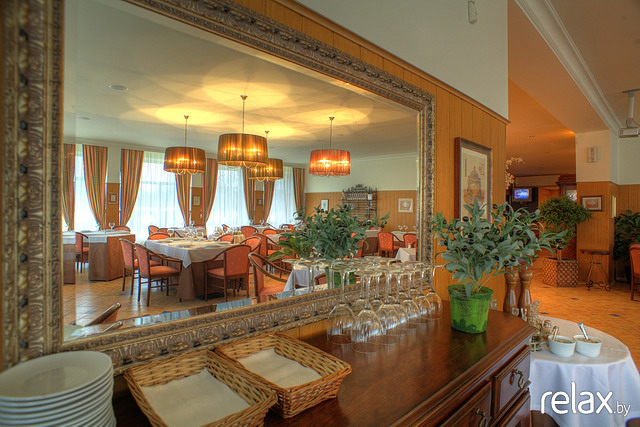 Вот пара фоток ресторана. Хочу украсить белыми цветами. и немного красных пятен тюльпанами и барбарисками.