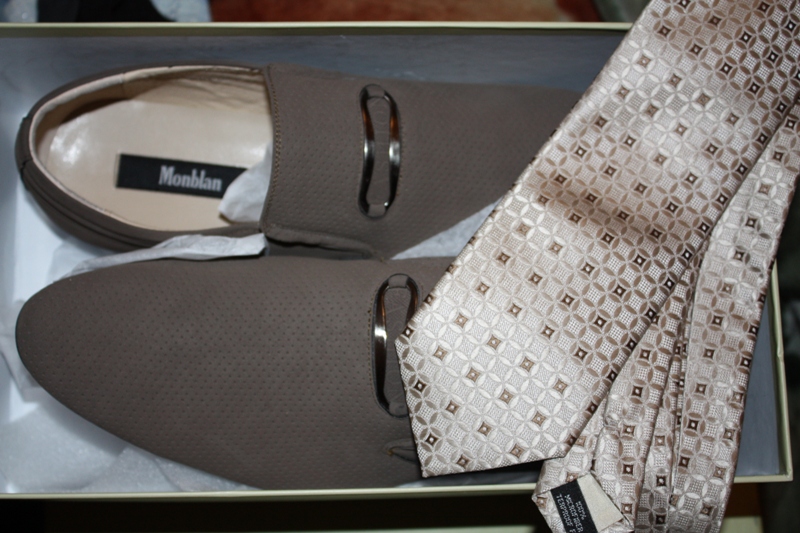 Долго носились по магазинам. Купили туфли, которые понравились БМ, к ним набор из галстука, платочка и запонок. Ну и мне 2 пары чулочков молочно-белых к платью.
