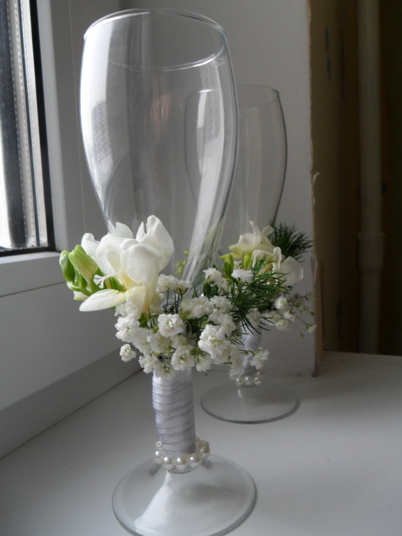 solotze, мне очень нравится украшение бокалов живыми цветами, но вот только они завянут, а я хочу свои бокалы оставить, как память и доставать их на годовщины  Поэтому скорее всего буду украшать лентами, бусинами, стразиками (как мне тут посоветовали  ) или чем-то в таком роде