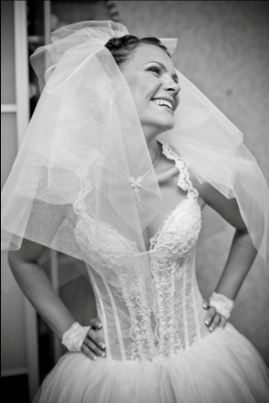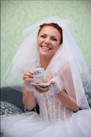 С чего начинается тот самый день Х? Конечно же со сборов невесты) Я проснулась, сходила в душ..и вроде времени вагон, а оно тут же все закрутилось-завертелось!! даже не дали поволноваться  на самом деле была внутренне спокойна как удав, а внешне..ну хохотала я без устали) может, у меня так проявляется волнение Меня бытренько превратили в красотку) глядя в зеркало, не могла поверить, что это я)) и вот я бегаю по квартире, не знаю, за что хвататься (случилась небольшая накладочка)..вся такая красотка, в фате и халате младшего брата..и ту приходит фотограф!!