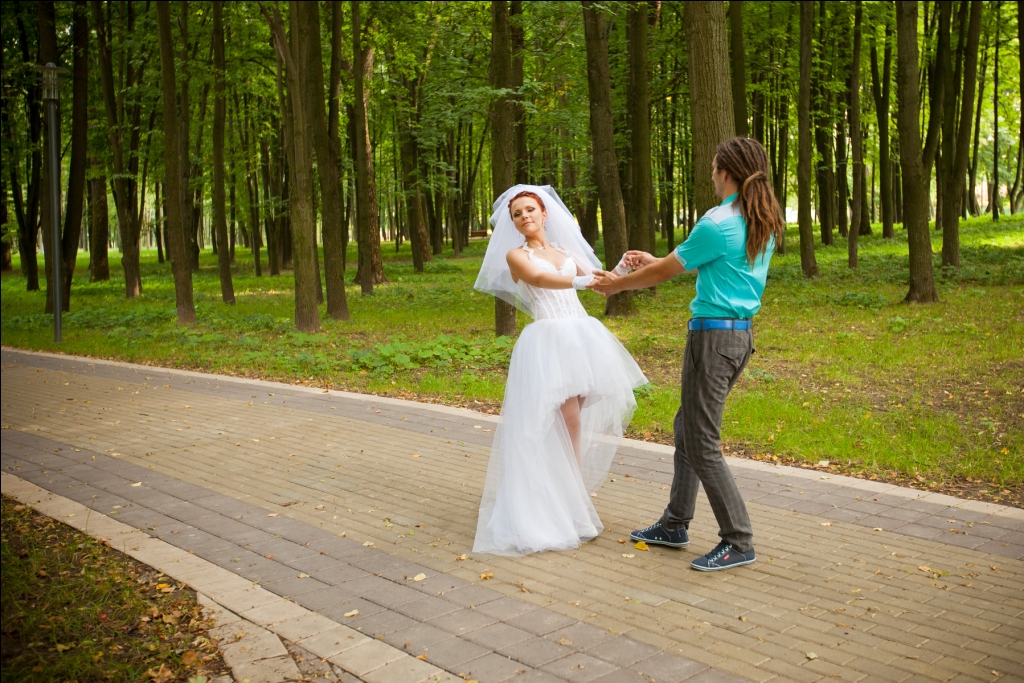 Были и забавные моменты) Пашу просили прыгнуть (аля билан)..и теперь у нас 3 такие фотки) тк на 2х - перед Пашей гуляет голубь))) Хвост платья я повесила на руку, тк он таскался до невозможности и постоянно тянул за собой сухия листья :mrgreen: звук был, словно метлу за собой тяну :mrgreen: