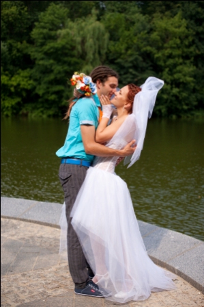 Сразу после ЗАГСа - 2й фотосет) только мы с мужем и свидетели. Место - парк возле ресторана Виктория. Мы погуляли, порепетировали танец, поискали фонтаны...а они не работают :evil: и такая жара-жара...плюнули мы и двинулись обратно. я уже не хотела трамваев, ни походов, гудели ноги, от жары ехала крыша! поэтому в рест мы приехали даже на пару минут раньше :D