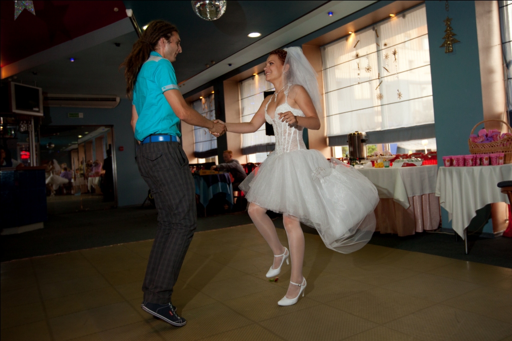 вот он - танец наш!!! :dan: стали по местам, звучит музыка...Паша вышел, я потом..иду, смотрю на него и слезы на глазах!!!!!! :roll: первое па! и до меня доходит: я рано вышла!! стоим, смотрим друг на друга, меня пробирает на ржач :roll: музыка пошла дальше, мы крутимся, а я ору шепотом Паше на ухо, что танец-то я забыла!!! :roll: он на меня вытаращился, делать-то что?! все это происходит в считаные секунды!!а потом оно как-то все собой получилось :mrgreen: мы отплясали на славу) я не видела лиц, не знала, что я делаю, краем глаза заметила, что Паша сбился разок, но мы все равно пляшем!! :dan: пляшем так, что у Паши отвалилась бутоньерка :mrgreen: