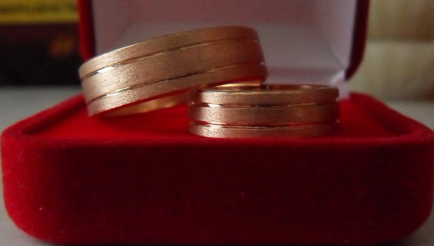 Ну короче забрали мы кольца. Массивными они вроде не выглядят, но мы их одели и как-то непривычно было. Нет, не неудобно, а просто непривычно. Еще, мне кажется, что в принципе можно их было сделать на пол размера меньше, оба. Но мы подумали, что лето проходим и посмотрим стоит их уменьшать или нет... Еще...мы их сделали матовыми, а теперь подумали ,что глянцевые лучше бы смотрелись.... наверное (какие-то мы очень сомневающиеся  ) Мастер сказал, что со временем эта матовость может стереться, колечки от того, что крутятся полирнутся. Короче говоря, не могу сказать, что я прям пищу от наших колец, ну кольца как кольца))) Я какая-то ровнодушная. Мы их отвезли домой, так что вечером я их сфотаю на фотик и выложу)