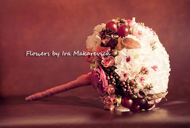 Пойду в пятницу с флористом встречаться,надеюсь она предложит,что лучше. Не могу определится,хочу более мягкий или яркий цвет букетика. Очень нравится,когда стебли обмотаны не ленточкой,а кружевом и прикреплена брошка...