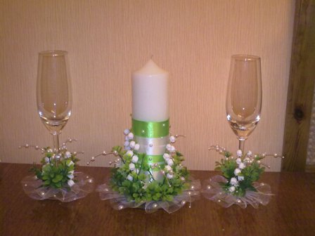 Свечка очень нравится. Бокалы симпатичные, но как для меня многовато там всего.