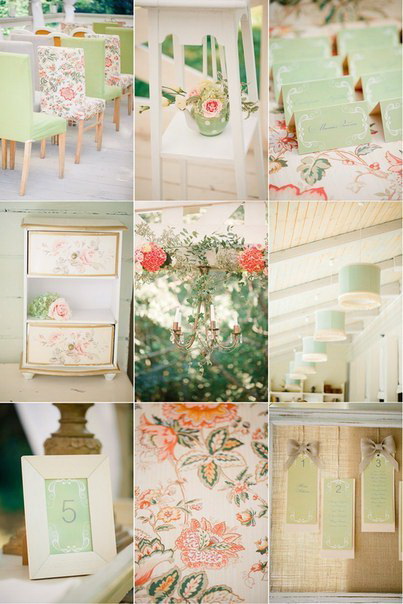 Немного картинок, которые меня вдохновляют ) Сейчас наиболее нравится вариант ваниль - нежно-зеленый - персиковый. Может быть использую какой-либо орнамент (т.к. у них сейчас потолок задекорирован не только светлой полупрозрачной тканью, но и более плотной, цветной)