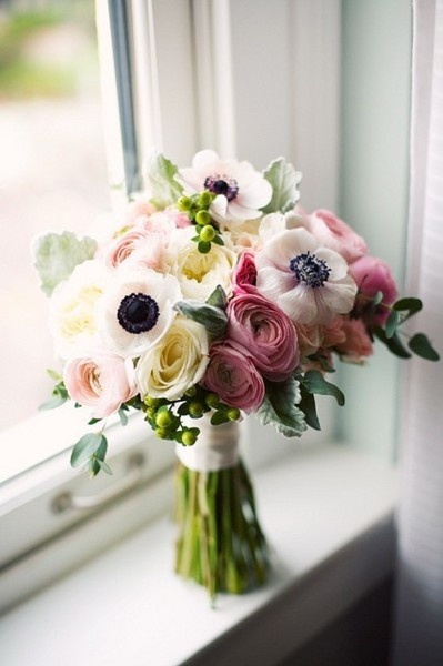 Теперь про саму свадьбу, пока я к ней готовилась у меня была тысяча идей, они рождались и умирали вместе с моим энтузиазмом) В начале хотелось акварельную свадьбу, всенепременно с пионами, потом хотелось прованс, потом еще что-то, в телефоне и компе куча картинок, планы планы планы...в итоге всего осталось по чуть-чуть и я этим довольна. Взялась за подготовку бойко, до ноября читала форум, к концу ноября у меня уже были основные подрядчики. Но как известно, все хорошо не бывает. За несколько месяцев до свадьбы пришлось менять место свадьбы (как я плакала...аж целых два часа, потом наматывая сопли на кулак переписала все телефоны с релакса и усадила жениха обзванивать). Конечно многое уже было занято, либо совсем не по деньгам, на тот момент выбирали между променадом и поречками, но так как концепция, разработанная под предыдущее место для променада не подходила, выбрали поречки. Стиль свадьбы рустик, оформление полностью доверила Оле, оставив себе кусочек с приглашалками и рассадкой порукодельничать. Мы дважды ездили смотреть место, она все замерила и посчитала, рассказала как она все представляет, мне и добавить было нечего=) Ведущего выбрала почти сразу, до этого я встретилась только с Найденовым, но не моё, а Сергей понравился окончательно и бесповоротно, мы обсудили кучу тем и я отменила встречи с другими ведущими. Флорист был самым первым выбранным подрядчиком в связи с кипишем на форуме по поводу того, что Оксана Орлова заказы не принимает на этот сезон, в итоге выбрала Наталью Жукову. Наталья отговорила меня от пионов, потому как букет нужен небольшой, а пионы гигантские цветы и мы оставили идею с пионами для оформления. Букет будет из анемонов,лютиков и кустовой розочки.