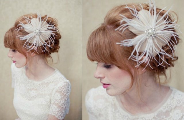 либо сбоку как цепляют цветы, не нашла чтобы были похожие украшения и фата, но принцип от же Вложение: