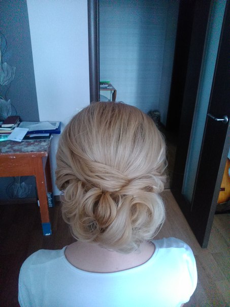 masid, Машечка, я согласна, что начинать надо с основ. Но есть смысл тратить на них много времени именно когда сбиваешься, не получается и прочее, лучше было перейти к другим элементам, которые оказались более сложными для нас. Должен же быть какой-то индивидуальный подход ) Или же уже обращать внимание и правда на нюансы. Например, за все время репетиций он ни разу не подсказал, что скользить вперед нужно с пяточки и вообще про скольжение, а для второго преподавателя это было очевидным. Ух я придира... Наверное, ожидала большего после полученных на него рекомендаций Ну да ладно, что-то излишне развили дебаты. В этом вопросе, конечно, всё субъективно. Лучше покажу добытые у Наташи фото пробной прически Сразу оговорюсь, сзади всё будет более плотно, потому как подобные кудряшки длинная довольно тяжелая фата будет "прибивать" + пробная прическа сделана без валика. И то я удивилась - откуда такая пышная шевелюра взялась Смысл понятен, я думаю. Фото спереди нет  На наш старый добрый ремонтный стол не обращаем внимания