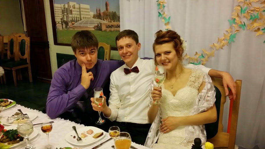 к 11 Приехали фото и видео-Таня и Леша. Свидетель пришел к 11 30. Так как живет рядом со мной, а не со Димой. И свидетели на зло всем приметам у нас были женаты. Других вариантов не осталось. И так с ними была целая эпопея. А вот еще вспомнила косяк Ведущего был, то чо он объявил что свидетели женаты, а мы его просили этго не делать, для некоторых родственников это было неприемлимо…