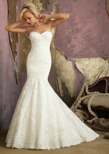 Я хотела только кружевное, не могла определиться с фасоном. Сначала выбрала А-линию, очень красивое от jasmine couture. Но потом, решилась на более изящную модель от Mori Lee..