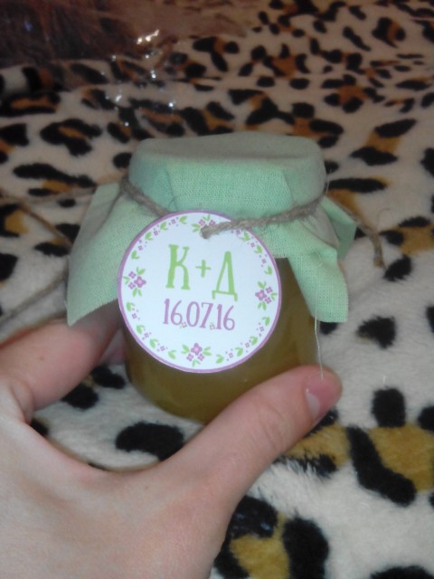 В качестве бонбоьерок у нас будут баночки с мёдом. И вот, баночки у меня, мёд куплен и были вечера когда я сидела и отмачивала их от бумажек и клея, наполняла мёдом) И вот вчера наконец закончила) Пока милый смотрел футбол))