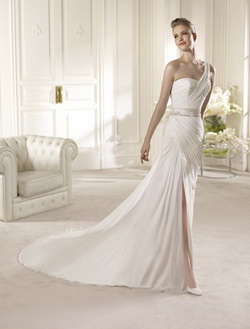 Утонченная женственность, легкий, изящный абрис женской фигуры, не лишенный при этом пикантного шика легкого гламура. Свадебная коллекция наступающего года испанского модельного дома San Patrick – настоящая торжественная симфония воротников-стоечек, пышных платьев с эффектными бретелями через одно плечо, в стиле греческой тоги, ансамбль изящных, паутинно тонких кружев и расшитого бисером гипюра. Юбка платья San Patrick явно напоминает фасон «русалка», и по прогнозам дизайнеров в 2013 подобные модели будут иметь настоящий аншлаг. Наиболее популярными тканями свадебной отрасли станут шелк, сатин и органза. Они удивительно подчеркивают изящный женский силуэт, преподнося романтичную элегантность и соблазнительность самой невесты. Акцент на талию – обязателен!