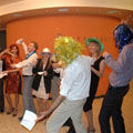 Водящий выходит из комнаты. Оставшиеся вспоминают одну-две строчки известного стихотворения или популярной песни и распределяют ее по игрокам: каждому игроку — слово. Входит водящий. Он должен внимательно слушать игроков, которые одновременно произнесут каждый свое слово из загаданной строчки стихотворения. Если водящий не отгадал, можно попросить игроков повторить всем вместе свои слова из строчки. Если водящий отгадал, то он называет строчку и стихотворение.