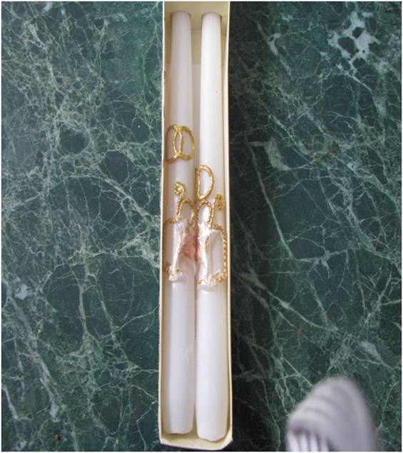 А вот мои свечки для обряда "Семейный очаг". Очень вписываются в нашу бело-золотую свадьбу.